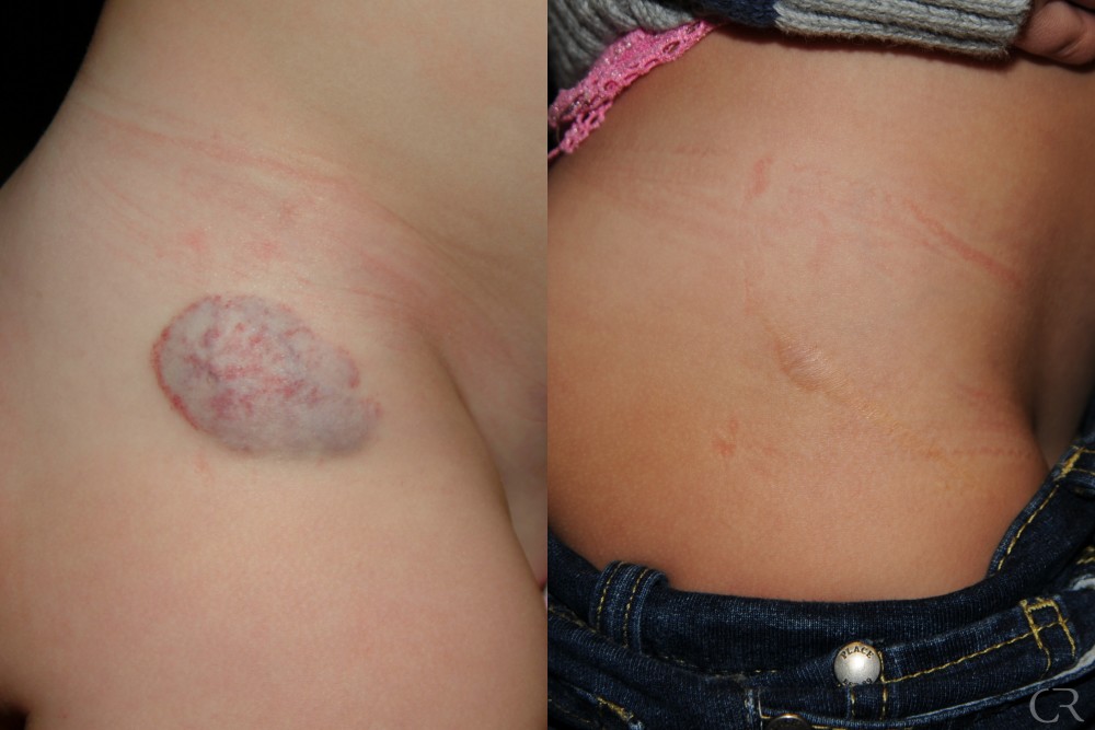 The growth of these masses is variable. They may demonstrate slow progressive growth or may enlarge rapidly. They may develop anywhere on the skin including the mouth and anus. There may be other lesions in the airway lining or internal organs that may go undetected. The period of growth may last less than a month, but often occurs up to six to nine months of age. The treatment is dictated by the location and the rate of growth. For instance, if the mass is growing on the back, a wait-and-see approach is preferred. If the mass is growing in a cosmetically sensitive area such as the lip, nose, or orbit with associated obstruction or ulceration, a more aggressive approach is appropriate. This approach includes the use of high dose steroids in conjunction with ulcer prophalaxis. This medication slows down or often halts the progression or growth until the growth phase of the lesion subsides. The medication is then tapered down.
